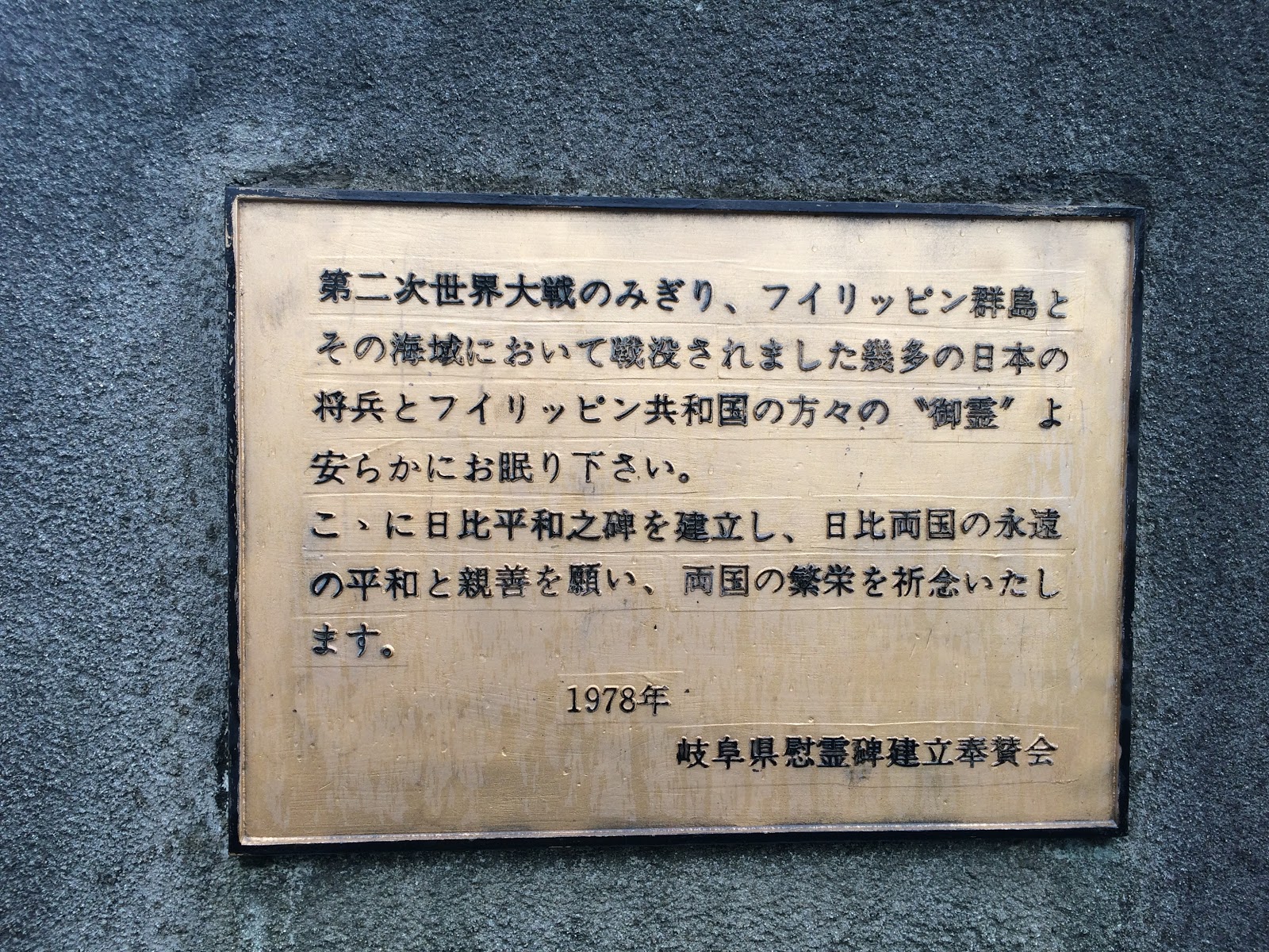 第二次世界大戦のみぎり、フイリッピン群島とその海域において戦没されました幾多の日本の将兵とフイリッピン共和国の方々の”御霊”よ安らかにお眠り下さい。