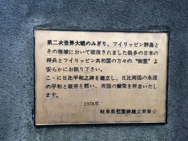 第二次世界大戦のみぎり、フイリッピン群島とその海域において戦没されました幾多の日本の将兵とフイリッピン共和国の方々の”御霊”よ安らかにお眠り下さい。